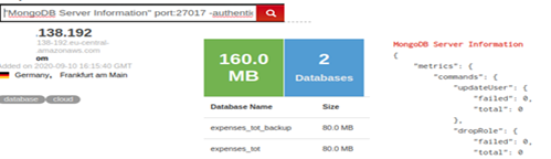 Figure 2 Requête shodan pour trouver les bases MongoDB sans authentification