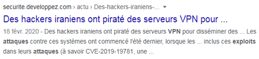 Il est aussi important de réaliser une veille régulière sur les composants VPN utilisés dans votre SI afin d’être informé au plus tôt en cas de découverte d’une vulnérabilité critique.